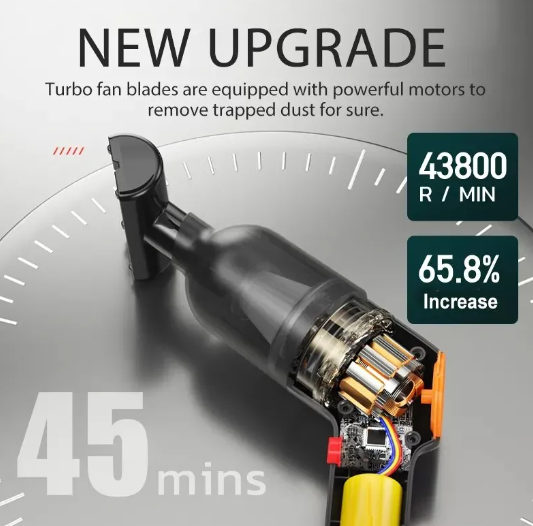 The turbo blades are equipped with a powerful motor,which can effectively and quickly remove stubborn dust,