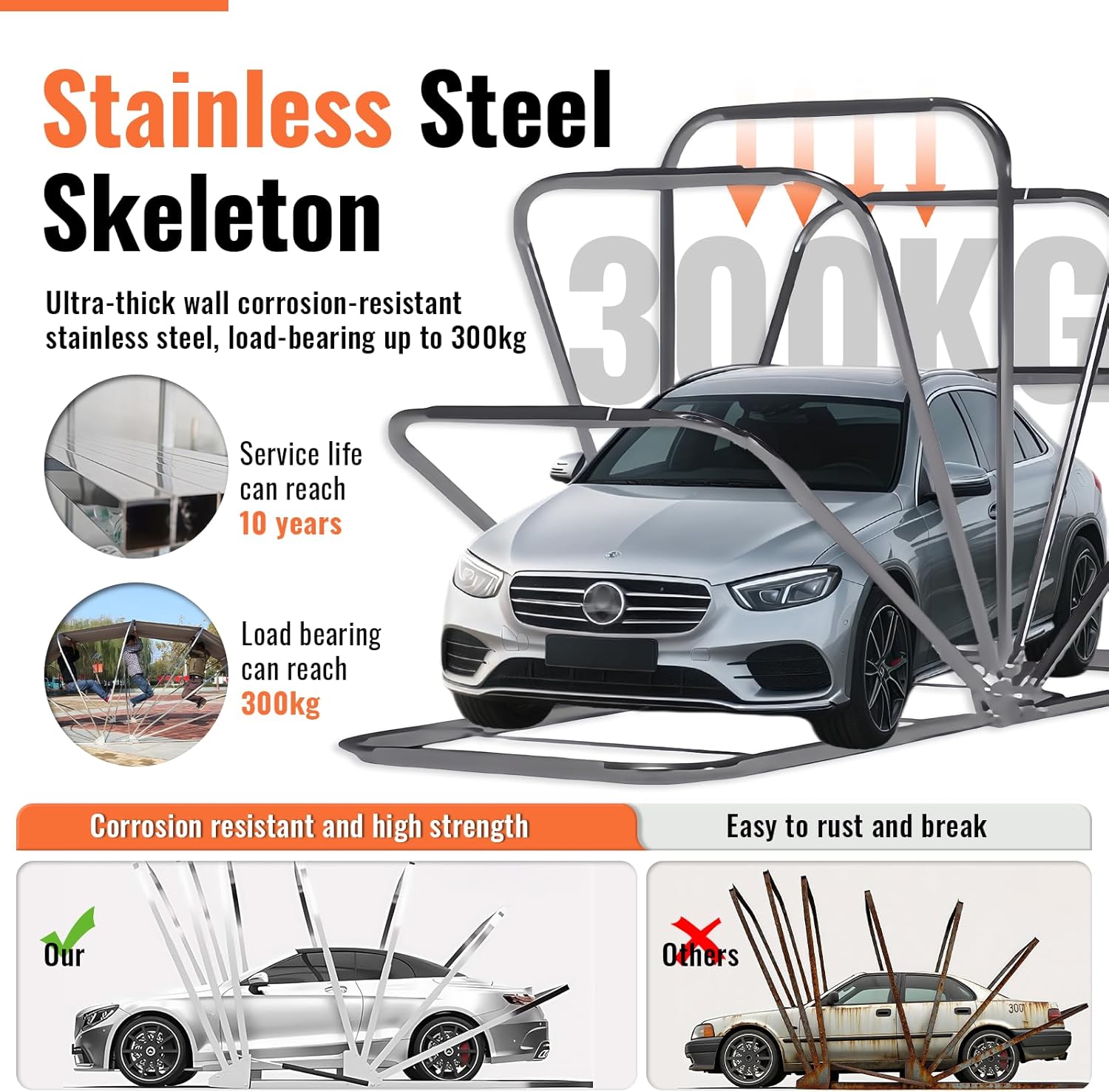 ✔️ Stainless Steel Heavy-Duty Car Shelter